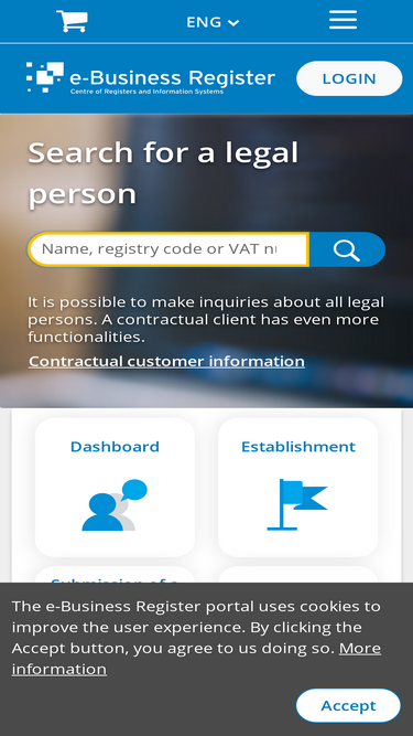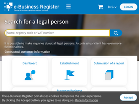 76%the e-business register compiles the data of all legal entities registered in estonia and provides access to both valid and historical information. companies, sole traders, non-profit associations and state or local government agencies can be established electronically on the portal of the e-business register. through the portal of the e-business register, it is possible to examine the data of legal entities related to you, change data and submit applications and annual reports to the register.