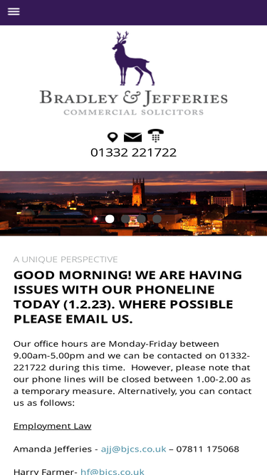 100%bradley and jefferies are commercial, corporate and employment law solicitors in derby in the east midlands, dealing disputes, commercial property law and contracts. we work throughout derbyshire, staffordshire and leicestershire and as most of the uk