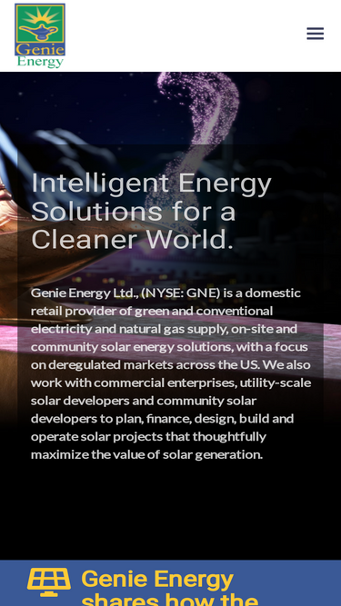 85%Genie Energy believes that competition and ceaseless innovation are required to meet the world’s growing demand for affordable, environmentally sustainable and reliable sources of energy.
