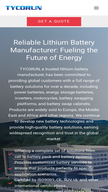 92%Discover TYCORUN, a leading lithium battery manufacturer and supplier with 17+ years of experience, providing high-quality energy solutions for industrial, commercial, and consumer needs. ISO9001, UL certified, trusted globally for innovation and reliability.
