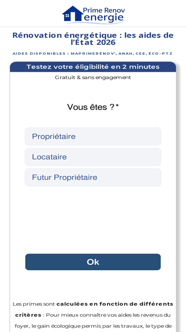 80%Réduisez votre facture énergétique et améliorez le confort de votre domicile grâce à notre simulateur d'aides énergétiques. Découvrez les subventions disponibles pour vos travaux de rénovation et obtenez des économies significatives.