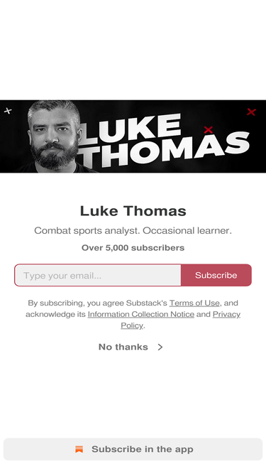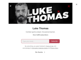 61%Combat sports analyst. Occasional learner. Click to read Luke Thomas, a Substack publication with thousands of subscribers.