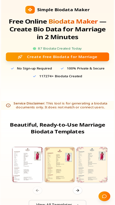 86%Create professional marriage biodata instantly.