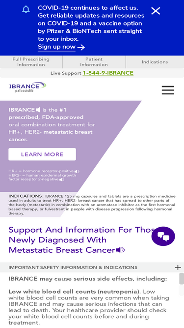 83%See risks and benefits. Learn about IBRANCE® (palbociclib) for the first line treatment of certain patients with HR+/HER2- Metastatic Breast Cancer.