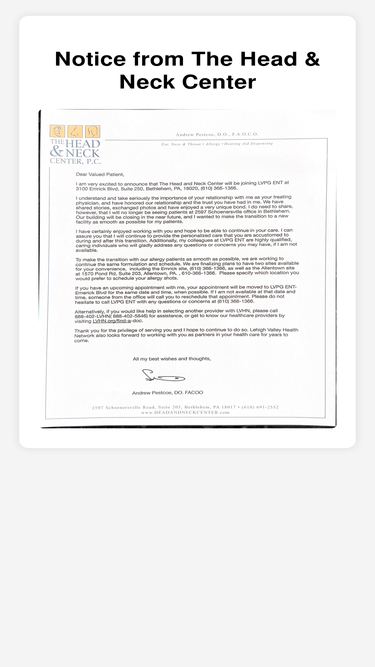 62%the head and neck center, pc are ent doctors in bethlehem and allentown, pa that provides the best care for sinusitis, allergies, and hearing loss. call today!