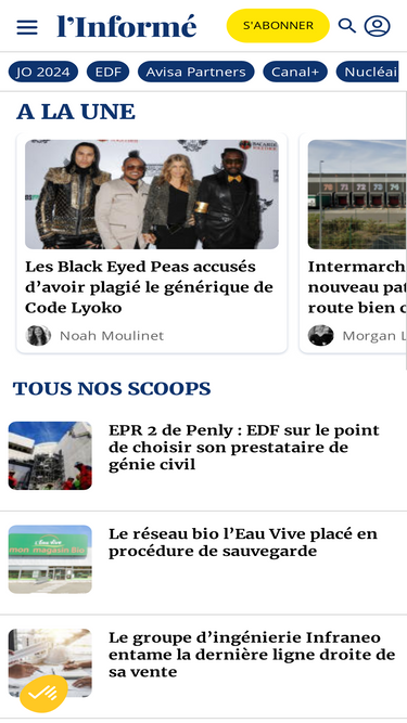 90%Chaque jour, l’Informé vous dévoile des informations exclusives sur les coulisses de nos entreprises et de leurs dirigeant(e)s. High Tech, médias, énergie, défense, santé, consommation, transports, M&A…
