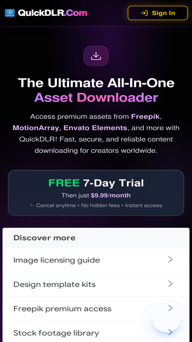 89%Download premium assets from 7+ major creative platforms for FREE! Freepik, MotionArray, Envato Elements & more. No subscription required.