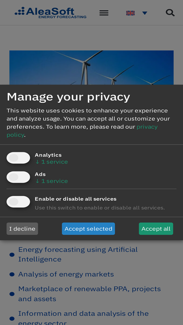 100%AleaSoft is selecting professional partners in the energy sector, who have solid knowledge of the energy markets and who are not competitors in forecasting services.