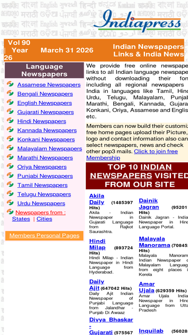 77%all indian languages newspapers links: read india's regional newspaper's news without downloading their fonts in tamil, hindi, urdu, telugu, malayalam, punjabi, marathi, bengali, kannada, gujarati, konkani, oriya, assamese and english language