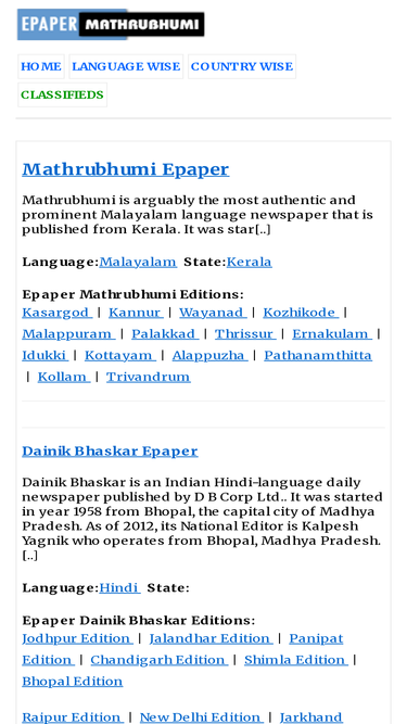 66%epaper mathrubhumi, it's a collection of epapers published news around the india on daily, weekly, bi-weekly and monthly basis in various languages.