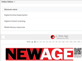 64%E-New Age, the e-paper of New Age, a leading English-language national newspaper published from Bangladesh capital Dhaka. It is the most esteemed newspaper in Bangladesh for its credibility.