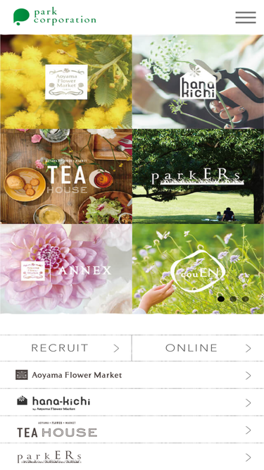 100%青山フラワーマーケット、hana-kichi、tea house、parkers等を運営する株式会社パーク・コーポレーションの公式ホームページ