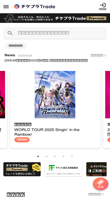 82%チケプラトレードは、ライブや舞台の「チケットを譲りたいお客様」と「チケットを購入したいお客様」が安心して取引ができる、主催者公認のチケットリセール(二次流通)サービスです。会員登録は無料。『定価取引』『入場保証』など安心・安全にチケットの売買ができます。