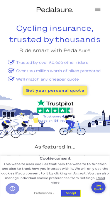 76%Pedalsure cycling insurance, trusted by thousands. Covering cyclists and their bicycles against theft, accidental damage, personal liability and more.