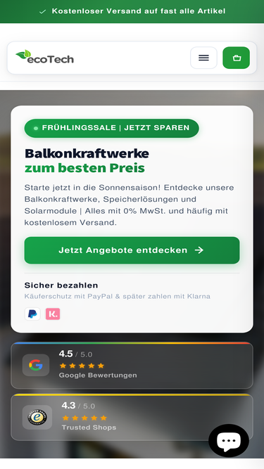 76%Angaben gemäß § 5 TMG ecoTech Solar ist eine Marke der: DVP Deutsche Photovoltaik GmbHIndustriestr.747495 RheinbergGermany Tel .: 02843 9608057 E-Mail: info@ecotechsolar.de Bankdaten / Bankverbindung Zahlungsempfänger: DPV Deutsche Photovoltaik GmbH IBAN: DE50350603861507350004 BIC: GENODED1VRR Registereintrag:Eintra