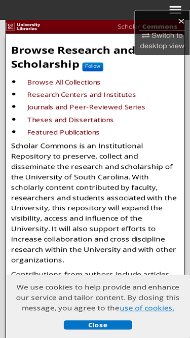 83%scholar commons is an institutional repository to preserve, collect and disseminate the research and scholarship of the university of south carolina.