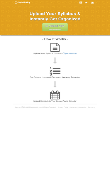 98%syllabuddy helps college students get organized on their coursework. simply upload your syllabus, syllabuddy automatically transfers all due dates to your google/apple/outlook calendar. import syllabus to google/apple/outlook calendar.