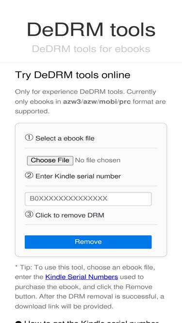 85%this is a repository of all the scripts and other tools for removing drm from ebooks that i could find, committed in date order as best as i could manage.