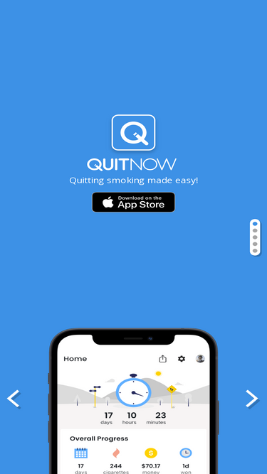 85%QuitNow is the app to quit smoking. It features health statistics, achievements to help you engage and a community full of people who are also quitting. And it's free.