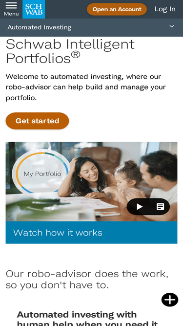 95%schwab intelligent portfolios is investing made easy. our robo-advisor builds, monitors, and rebalances a diversified portfolio of exchange-traded funds.