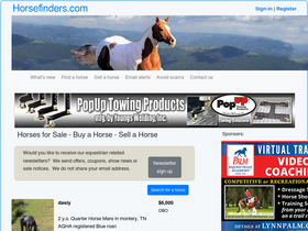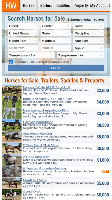 100%leading horse classfieds (since 1995) of horses for sale, horse trailers, horse saddles and horse property.