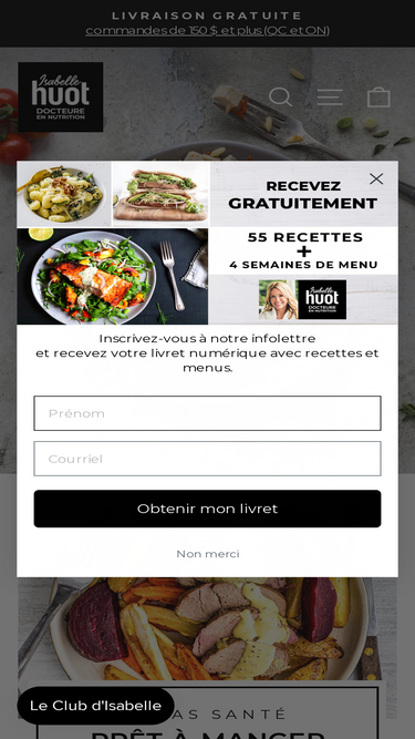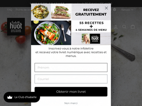 87%À LIRE : DES COMMENTAIRES TOUCHANTS! Des gens se confient sur leur histoire et leur expérience avec les produits et services d'Isabelle Huot Docteure en nutrition. Fidèle à sa mission d'aider les Québécoises et Québécois à développer et maintenir de saines habitudes alimentaires, Isabelle Huot Dre en nutrition a développé depuis 2009 des produits et des services qui conviennent à tous!