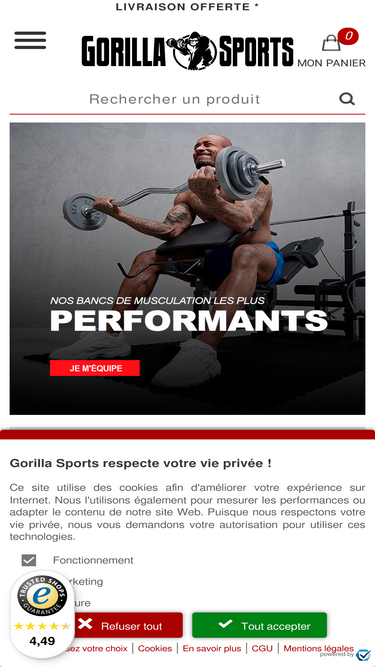 100%Commandez des équipements sportifs et créez votre salle de sport à la maison. Bancs de musculation, haltères et poids de qualité pour votre home gym fitness.