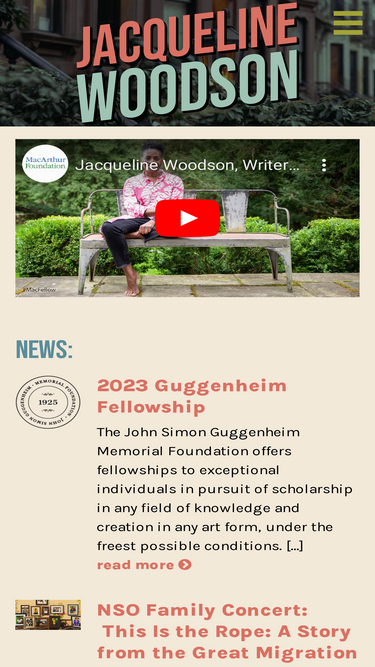 86%Jacqueline Woodson is an American writer of books for adults, children, and adolescents. She is best known for her National Book Award-Winning memoir Brown Girl Dreaming, and her Newbery Honor-winning titles After Tupac and D Foster, Feathers, and Show Way.
