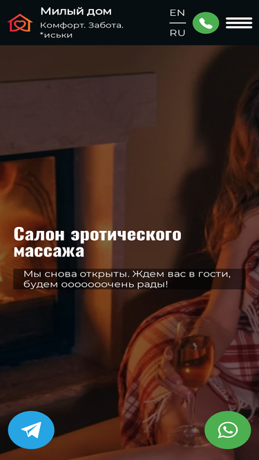 66%Салон эротического массажа Милый дом в Москве. Более 30 красивых девушек массажисток. 15 программ на любой вкус. Полная конфиденциальность. Эротический массажный салон, из которого не хочется уходить!