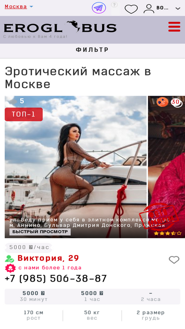 78%сайт с огромной базой анкет лучших частных эротических массажисток москвы для качественного досуга. вас ждет индивидуальный подход, уютная атмосфера и очаровательные массажистки. звоните прямо сейчас и получите скидку в 30%!