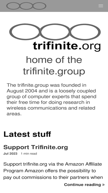 100%The trifinite.group was founded in August 2004 and is a loosely coupled group of computer experts that spend their free time for doing research in wireless communications and related areas.