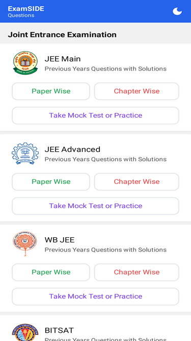 88%past years exams (jee-advanced, jee main, wb jee, gate-ce, gate-ece, gate-ee, gate-cse, gate-me, gate-in) questions with solutions provider examside.com