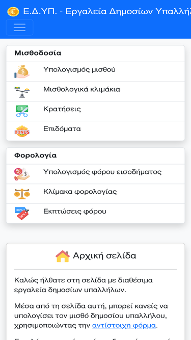 79%μέσα από τη σελίδα αυτή, μπορεί κανείς να υπολογίσει τον μισθό δημοσίου υπαλλήλου, χρησιμοποιώντας την αντίστοιχη φόρμα. επιπλέον, μπορεί κανείς να δει από το μενού στοιχεία αναφορικά με τις οικογενειακές παροχές, τα μισθολογικά κλιμάκια ανά βαθμίδα εκπαίδευσης, καθώς και πληροφορίες σχετικά με τη φορολογία. όλα τα στοιχεία αυτά εμπλέκονται στη διαδικασία υπολογισμού του μισθού και αφορούν, προς το παρόν, το έτος 2024.