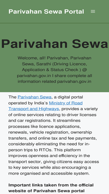 92%Welcome, all! Parivahan, Parivahan Sewa, Sarathi (Driving Licence, Application & Status Check ) @ parivahan.gov.in I share complete all information
