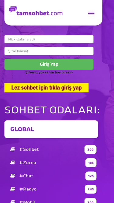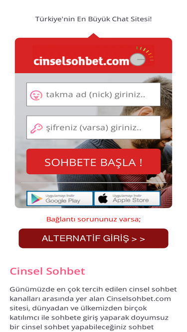 Yetişkin sohbet odaları hizmeti veren, cinsel sohbet, evli sohbet, gay sohbet, gibi kelimelerde öncülük eden yetişkinlere özel sex sohbet odası