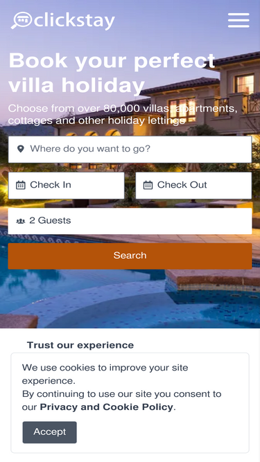 85%700,000 holiday rentals. Find villa holidays, apartments, cottages and other holiday homes in 150+ countries. Book your accommodation direct to save up to 40%
