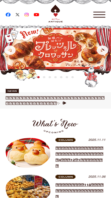 73%「マジカルチョコリング」、「あん食パン」など、とことん素材にこだわった美味しくて楽しいHEART BREAD ANTIQUE(ハートブレッドアンティーク)のパン。訪れるだけでわくわくするような世界感のお店も魅力です。季節限定フレーバーやお得なキャンペーンも!ぜひ、遊びにきてください。