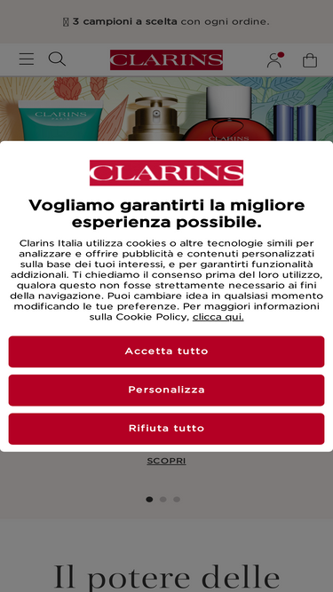 80%Esperti di skincare dal 1954. Scopri il catalogo Clarins: trattamenti mirati e ultra efficaci, che racchiudono ingredienti naturali e sostenibili.