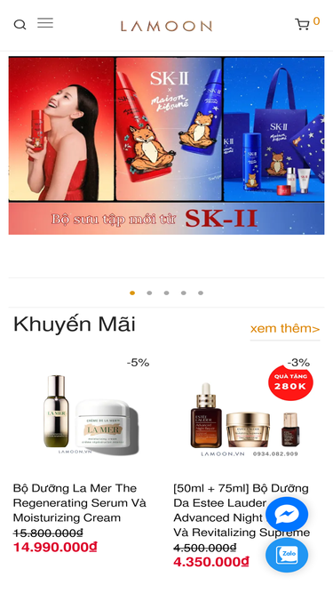 88%LAMOON cung cấp mỹ phẩm và nước hoa cao cấp chính hãng. Mỹ phẩm SK-II, Mỹ phầm La Mer, Mỹ phẩm La Prairie, Mỹ phẩm shiseido, Mỹ phẩm Estee Lauder, Nước hoa Chanel và nhiều thương hiệu cao cấp khác. Nhiều chương trình khuyến mãi hấp dẫn, giao hàng miễn phí. Zalo 0934.082.909 hoặc 0908.666077.