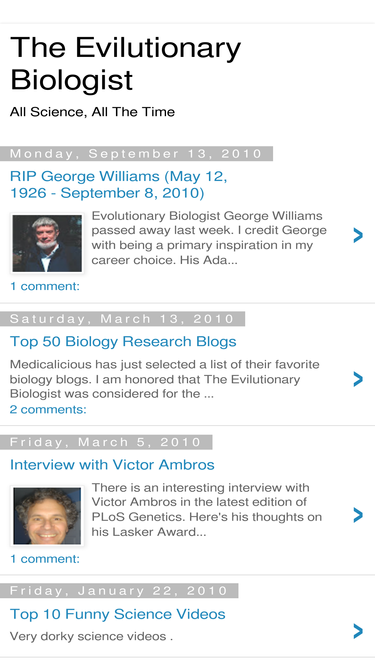The other five competitors in the top 10 list are littleprofessor.typepad.com, anthropology.net, davidsuzuki.org, evilutionarybiologist.blogspot.com, and johnhawks.net.