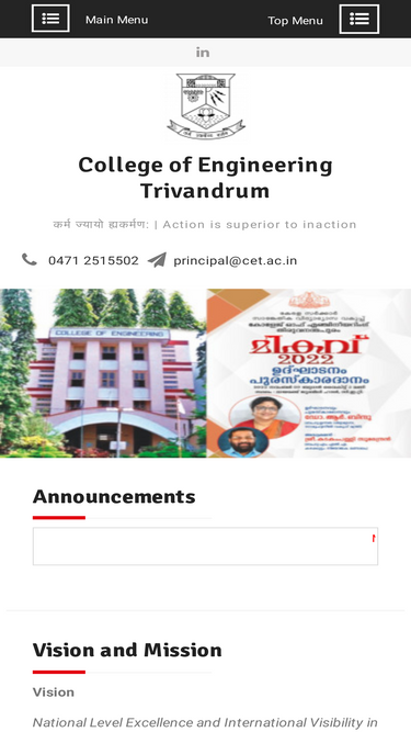 70%The College of Engineering Trivandrum (CET), established in 1939, is the first engineering college in the erstwhile Travancore State. It began as a constituent college of Travancore University with an initial intake of 21 students each in Degree and Diploma… Read More