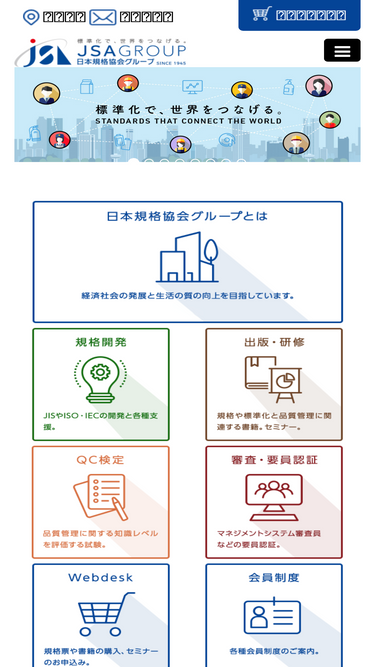 83%日本規格協会グループ公式ウェブサイト「JSA GROUP Webdesk」のトップページです。日本産業規格JISや国際規格ISO・IEC、海外規格ASTM・BS・DIN・ASME・UL等の規格販売。品質管理や信頼性等の管理技術、ISOマネジメントシステム、標準化、規格説明会、国際標準化研修など様々な研修メニューがございます。