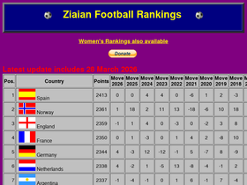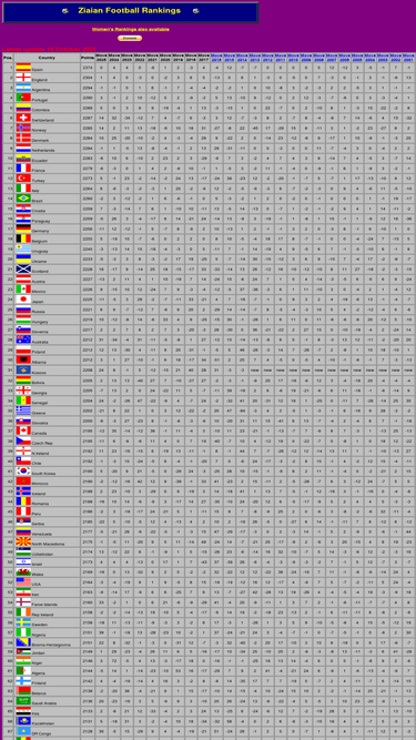 87%ziaian football rankings is an alternative football ranking system to fifa football rankings with frequent updates and world flags and capitals