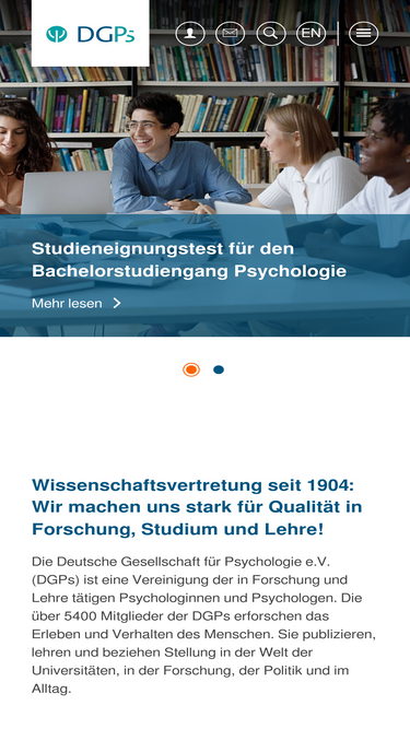 92%Die Deutsche Gesellschaft für Psychologie e.V. (DGPs) ist eine Vereinigung der in Forschung und Lehre tätigen Psychologen und Psychologinnen. Die DGPs erstrebt die Förderung und Verbreitung der wissenschaftlichen Psychologie. Die über 4700 Mitglieder der DGPs erforschen das Erleben und Verhalten des Menschen. Sie publizieren, lehren und beziehen Stellung in der Welt der Universitäten, in der Forschung, der Politik und im Alltag.