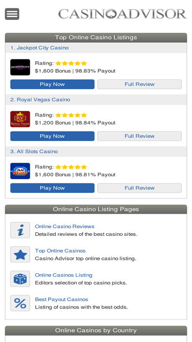 98%guide to best online casino gambling sites offering top lists, reviews, news, articles, free casino games and more.
