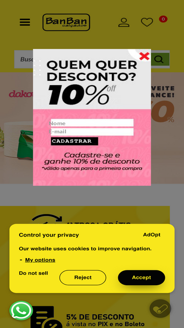 74%Receba nossas novidades. Cadastre-se na nossa newsletter e fique por dentro de tudo que acontece na BanBan. Calçados. +. Adulto. Recém nascido. Baby. Infantil.