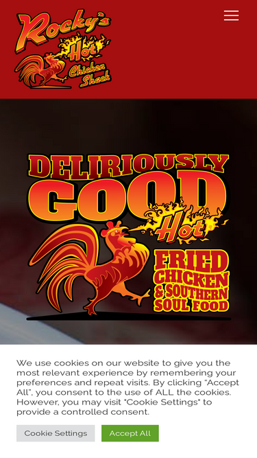 94%At Rocky’s Hot Chicken Shack, we pay homage to “Nashville style” hot chicken and southern soul food. We prepare our unique fried chicken to order and it all starts as “Plain.” From there we can add the spice from mild to extra hot (lots of folks just love it without the spice).