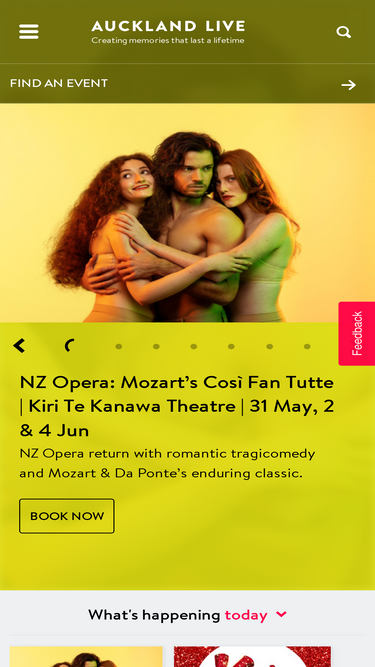 80%Discover what’s on in Auckland including local and international events. Experience music concerts, theatre shows, comedy acts, dance performances, musicals, and festivals. Check out aucklandlive.co.nz