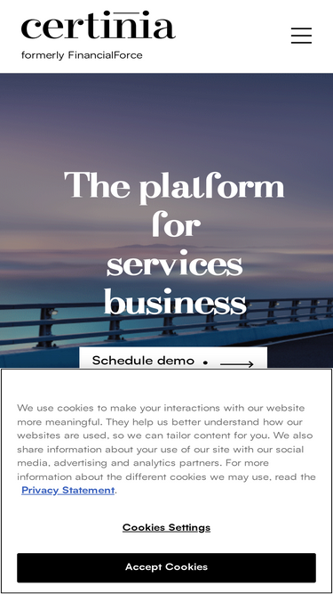 81%Certinia, formerly FinancialForce, offers cloud PSA, financial management, and customer success solutions built on the Salesforce platform. Streamline, simplify, and automate—all on one platform.