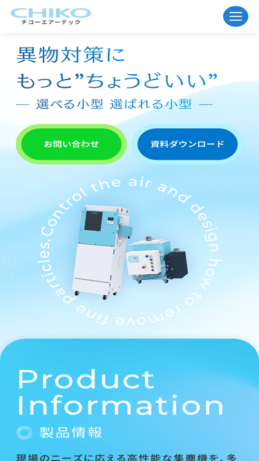 87%チコーエアーテック(CHIKO)のコーポレートサイトです。我々は小型集塵機の専門メーカーとして、「小型」かつ「高性能」を追求した集塵機の開発に取り組んでいます。